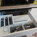 Pe lângă facilități de preparare a cafelei/ceaiului, oaspeții cazați la proprietatea, au la dispoziție o bucătărie complet echipată cu frigider, cuptor și sticlărie. Acest apartament este la aproape 300 de metri de cea mai apropiată stație de autobuz Struga.